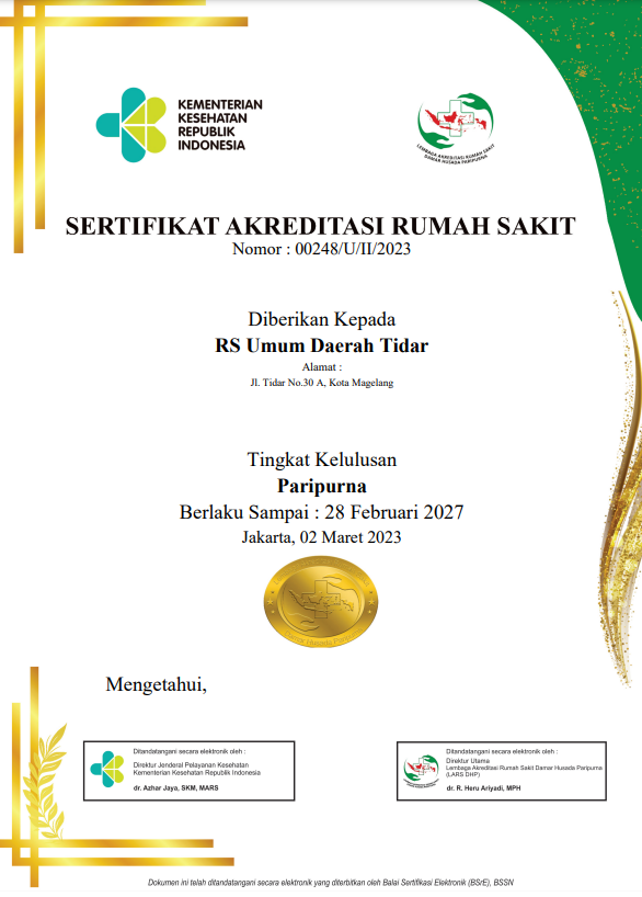 Selamat dan Sukses Untuk Seluruh Pimpinan Beserta Civitas Hospitalia RSUD Tidar Kota Magelang Atas Kelulusannya dalam Akreditasi Rumah Sakit dengan predikat